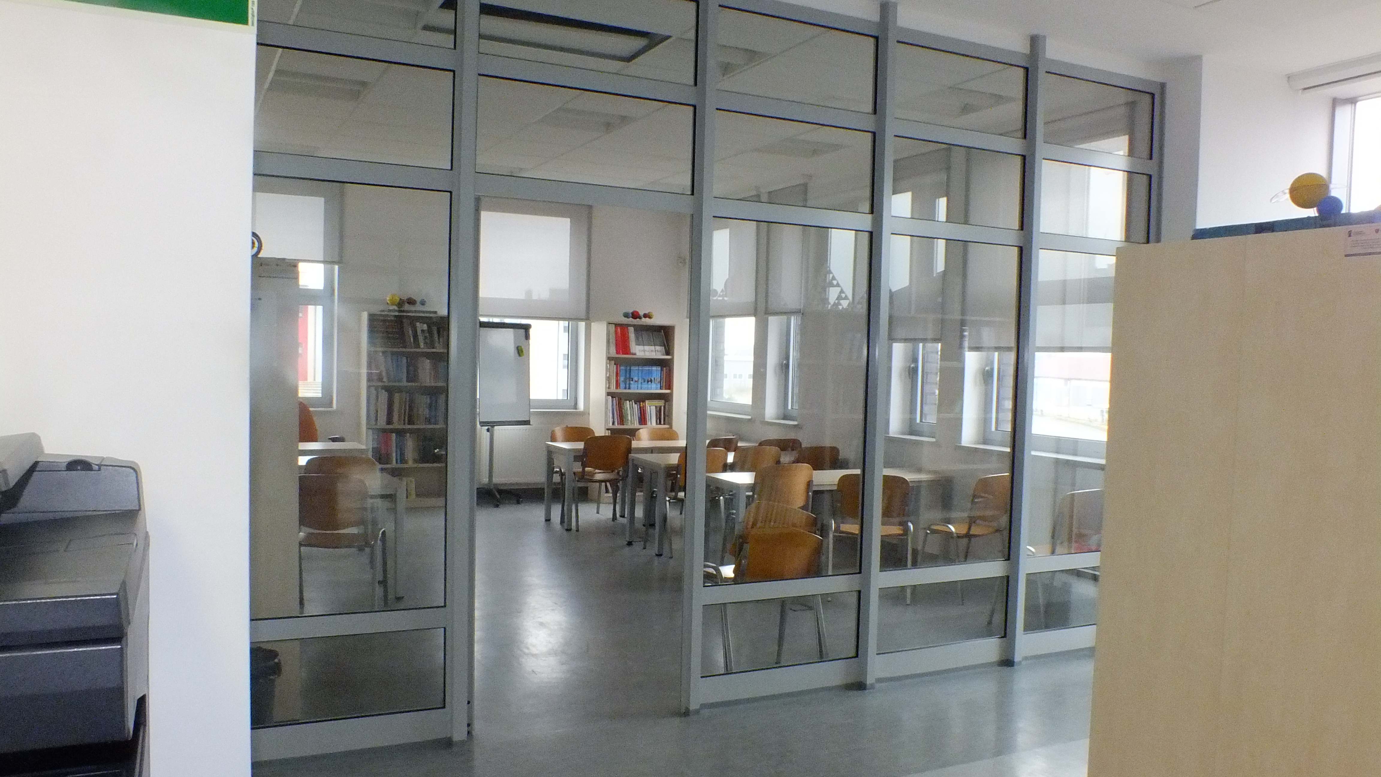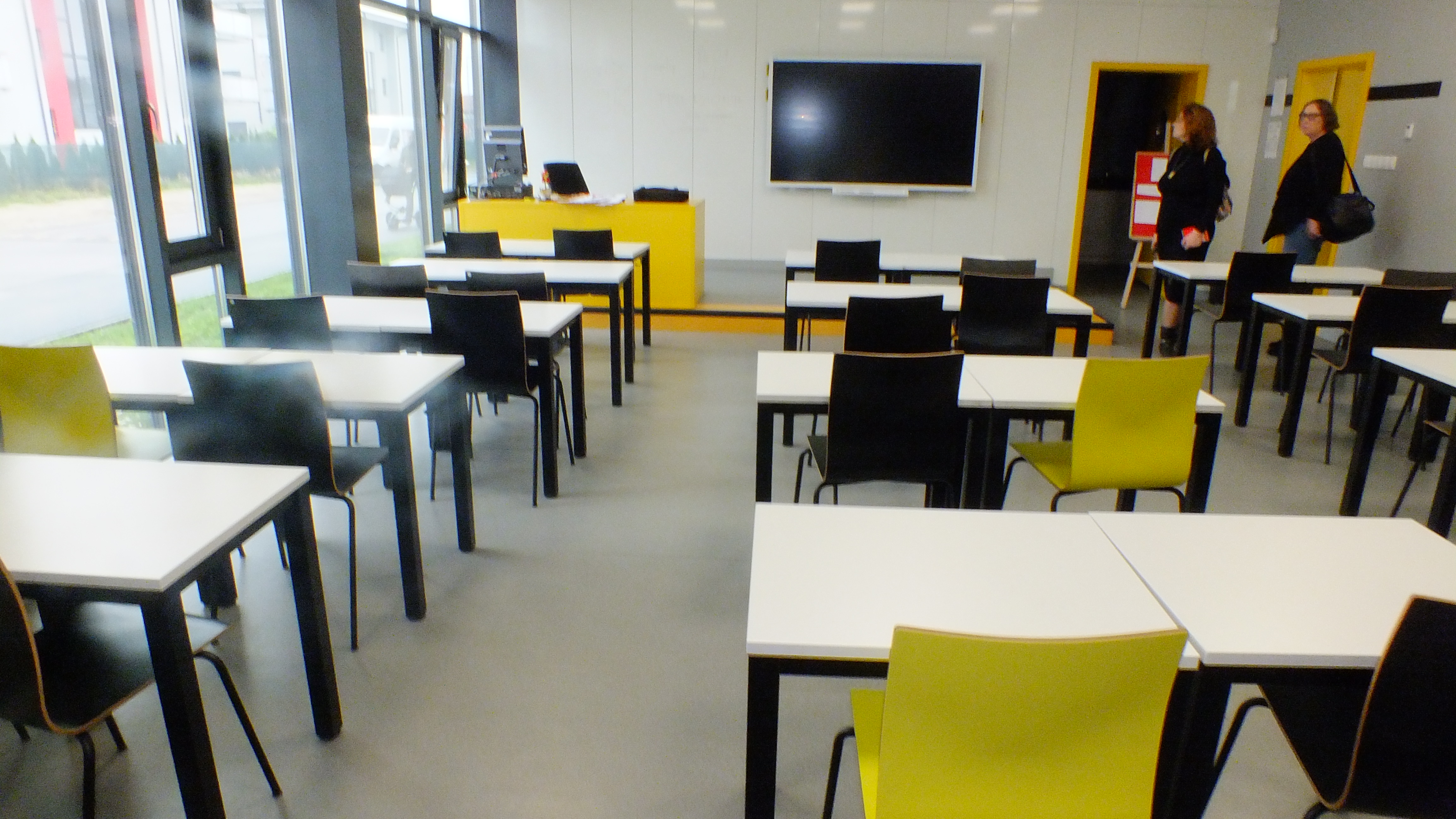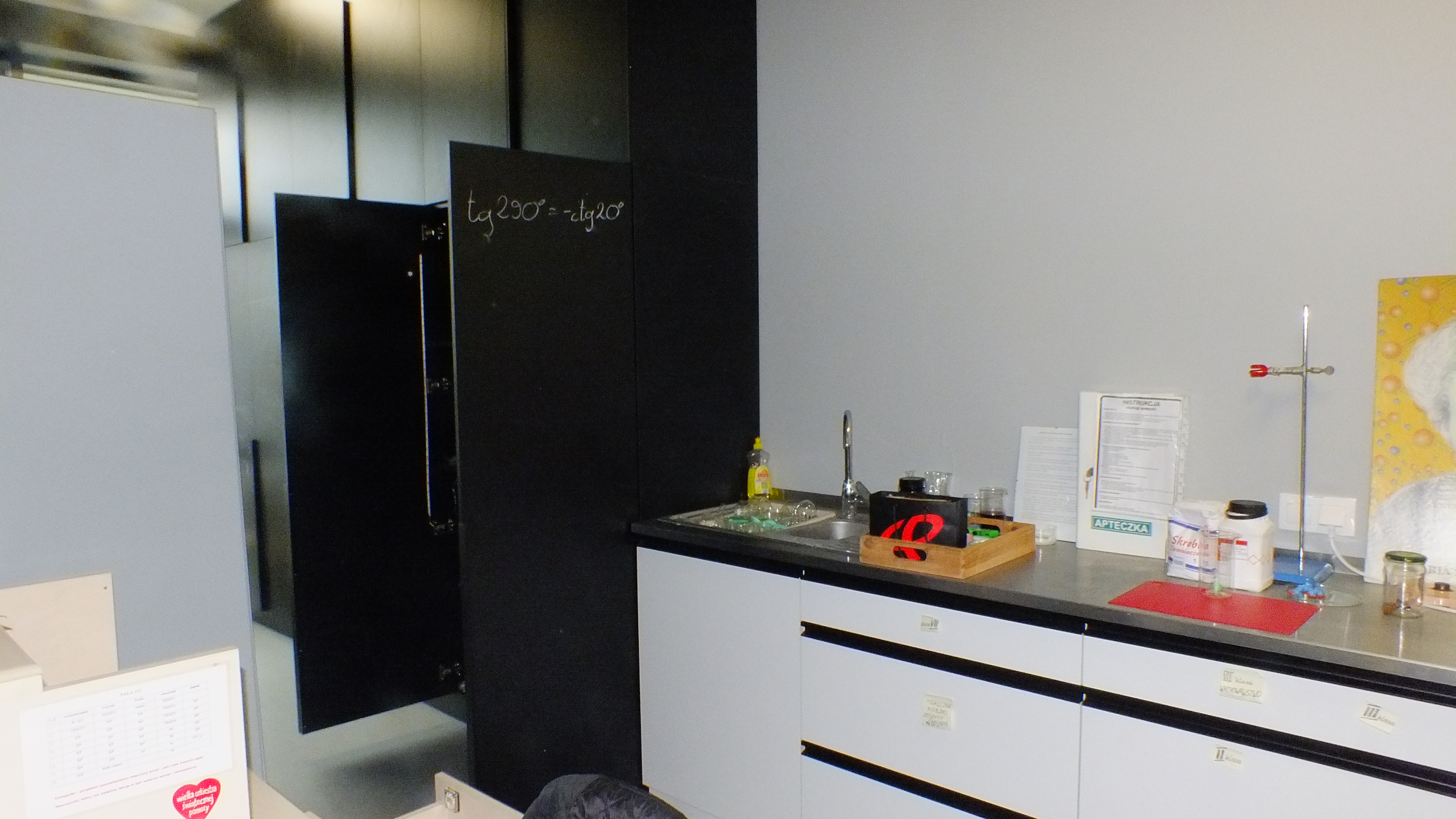Egyébként a fekete szekrényajtókat mindenhol olyan festékkel vonták be, amelyre lehet krétával írni. Az interaktív táblák mögötti falakat pedig olyan festékkel festették, amire táblatollal lehet feljegyezni bármit. A tantermekről még annyit, hogy mindegyikhez tartozik egy kis előkészítő helyiség. Olyasmi, mint nálunk a kémia- vagy fizikaterem melletti szertár.