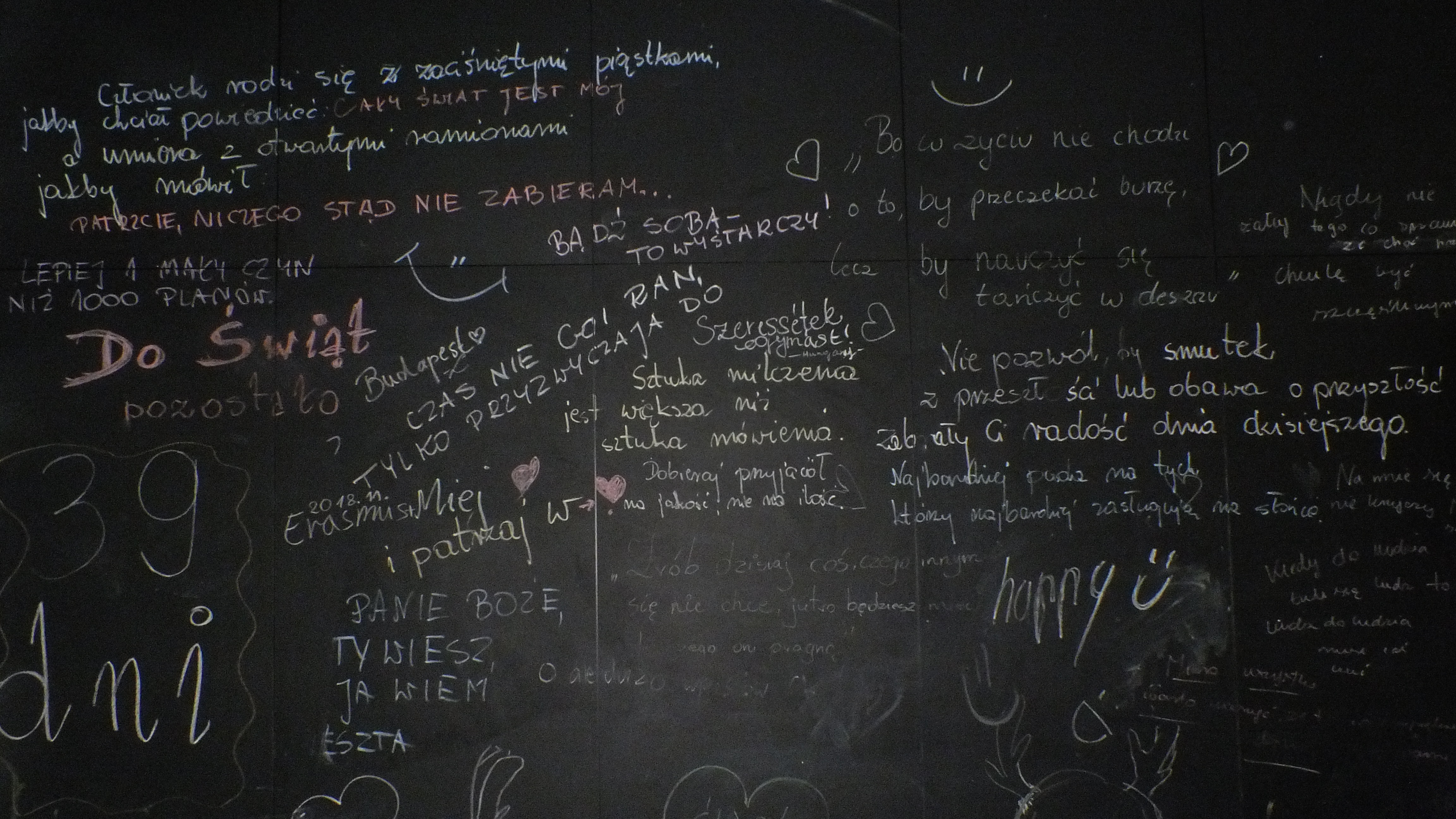 Az előző kép jobb oldalán lévő fekete fal szekrényeket rejt, de táblaként is szolgál. Krétával írhatnak rá okosságokat a gyerekek, mi is hagytunk egy üzenetet. Megtaláljátok?
