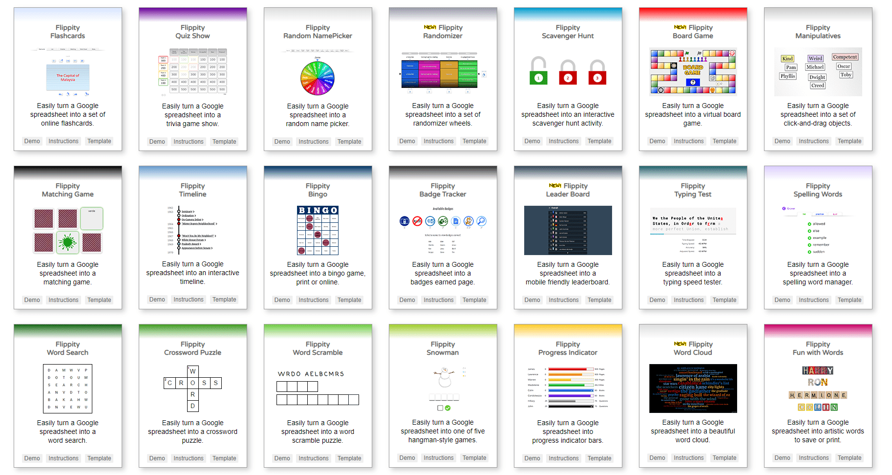 A Flippity oldal számos online és nyomtatható játék létrehozására és megosztására ad lehetőséget.